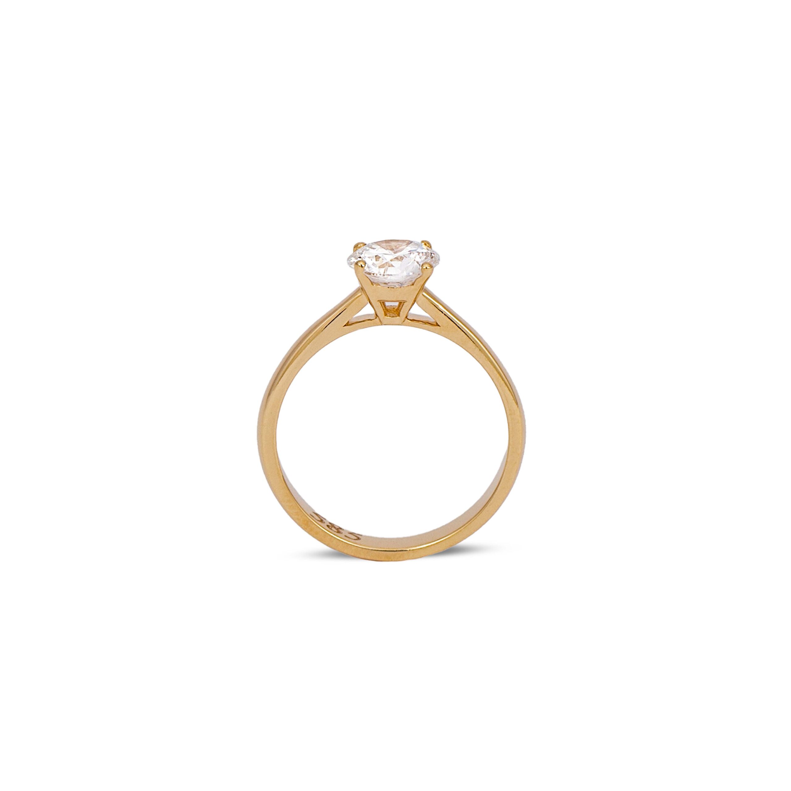A timeless yellow gold ring featuring a stunning 1.04 ct lab-grown diamond with exceptional clarity and color, crafted to capture attention and last a lifetime.